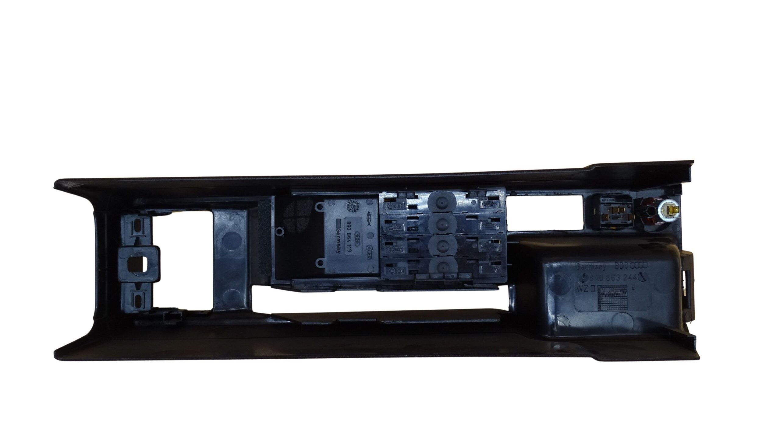 Artikelbezeichnung: 8A0863244B Audi 80 Cabrio Typ89 Mittelkonsole mit Ablagefach Kassettenfach elektrische Fensterheber Zigarettenanzünder Aussparungen für Schalter E-Verdeck B-Ware
