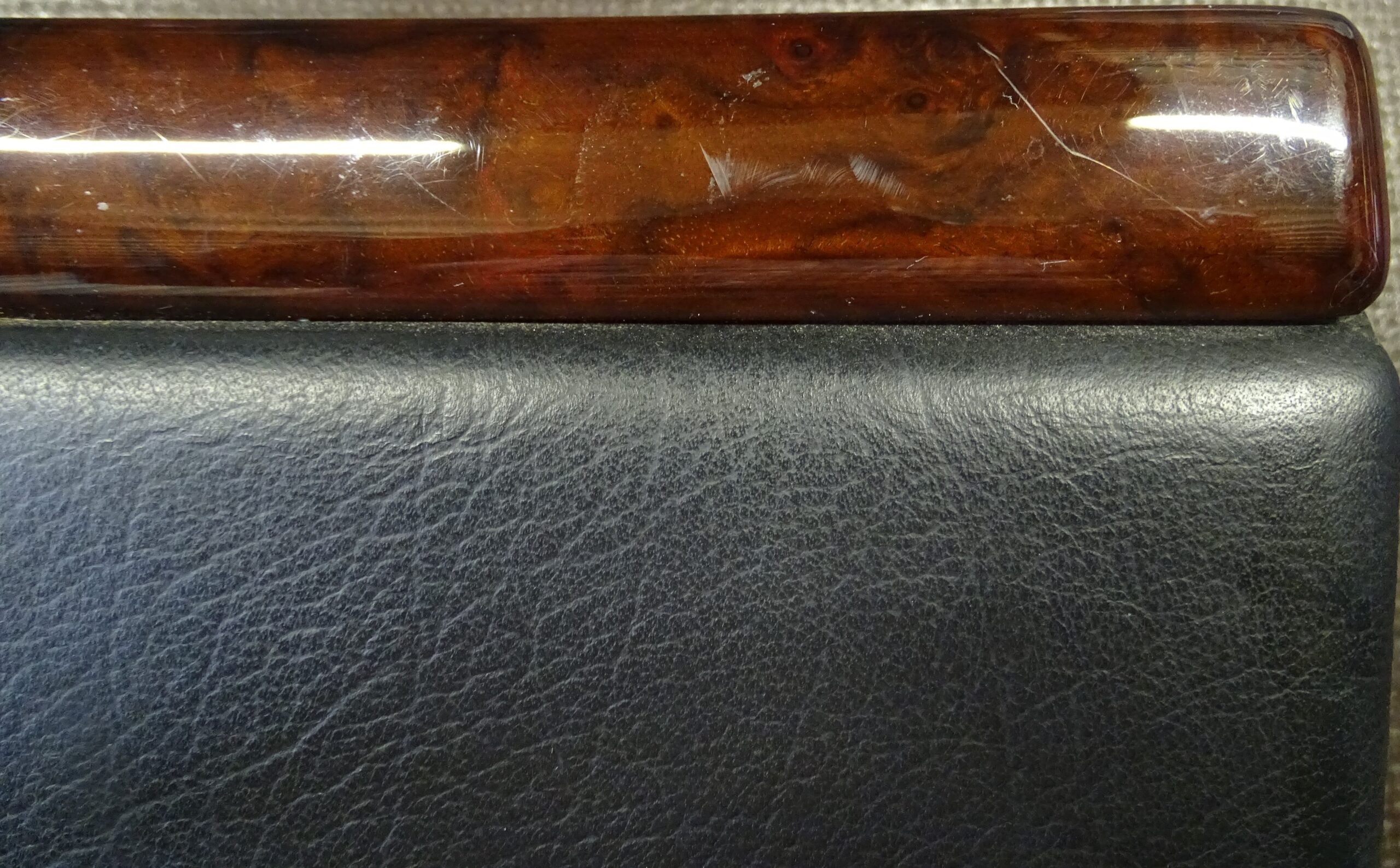 Lieferumfang: Türpappe Einsatz Seitenverkleidung Links Hinten Leder Anthrazit mit Zierleiste Wurzelholz