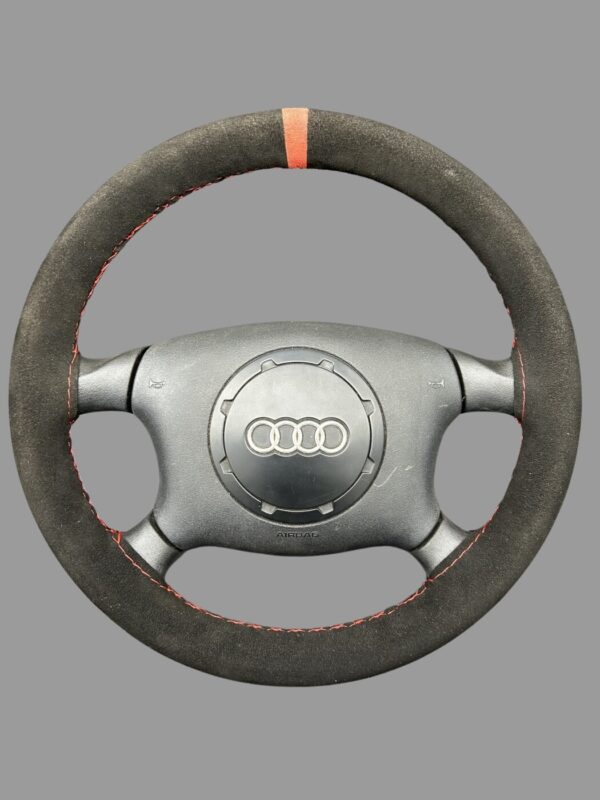 Artikelbezeichnung: 4B0419091AR + 8L0880201 Audi 80 Cabrio/Coupe Typ 89 A4 A6 Airbag Lederlenkrad 4-Speichen schwarz mit Velourüberzug