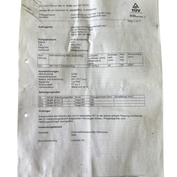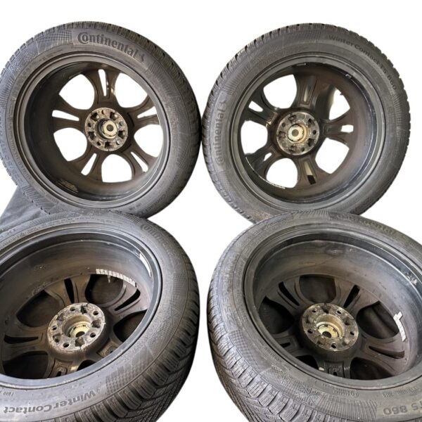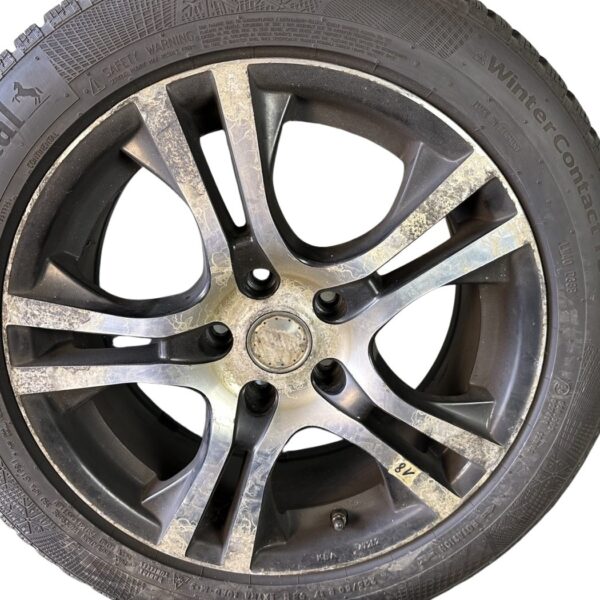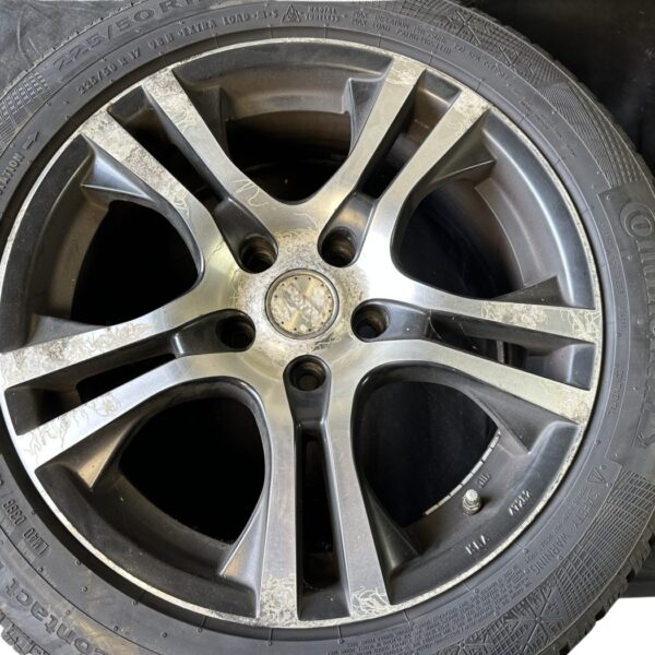 Artikelbezeichnung: 47282 Platin Wheels Alufelgen Schwarz/Silber mit Reifen 7x17 Zoll ET40, LK5x115 Hersteller: Platin Wheels KBA: 47282 Lochkreis: 5x115 Größe: 7x17 Zoll ET40 Farbe: Schwarz/Silber Reifen: Continental Winter Contact TS 860 225/50 R17 H DOT: 3918 Profil: 5mm Artikel besteht aus: vier Felgen mit Nabendeckel und Reifen Zustand: Die Felgen haben Gebrauchsspuren in Form von Bordsteinschäden/ Oberflächlichen Kratzern / Teerflecken / Bremsstaub Rückstände. Bei allen vier Felgen löst sich der Klarlack stark ab. Hinweis: Die Felgen sollten aufgrund der Gebrauchsspuren Aufbereitet / Lackiert werden.
