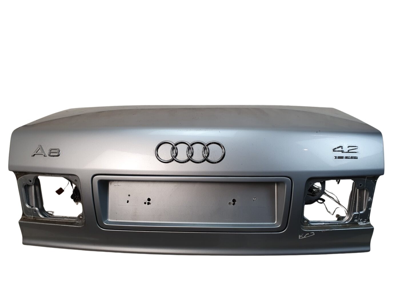 Artikelbezeichnung: 4D0827023N Audi A8 D2 Heckklappe Silber LY7M Passend für Fahrzeughersteller: Audi Passend für Fahrzeugtyp: A8 D2 Original Teilenummer: 4D0827023N Artikel besteht aus: Heckklappe Lack Code: LY7M Zustand: Gebraucht mit Gebrauchsspuren in Form von Verunreinigungen/ kleinen Kratzern möglich. Oben auf der Heckklappe befinden sich vermehrt größerer Kratzer (siehe Bilder). Die Ware wird ungereinigt geliefert. Die Ware wurde geprüft und ist funktionstüchtig! Hinweis: Aufgrund der Gebrauchsspuren empfehlen wir/sollte das Ersatzteil neu lackiert werden.