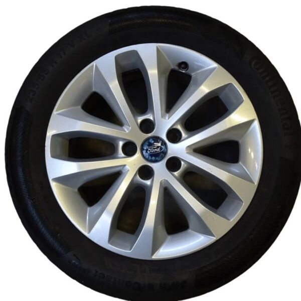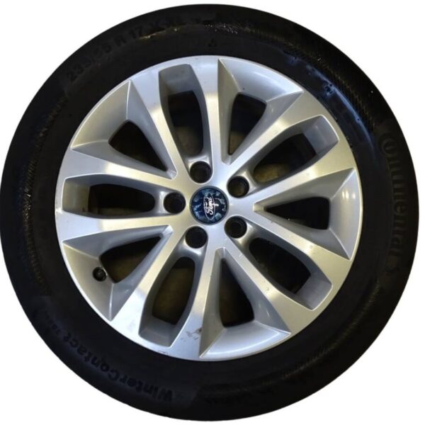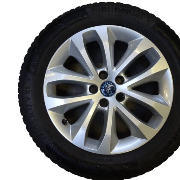Artikelbezeichnung: 8V4J-1007-AA Ford Felgen Continental 235/55 R17 Winter 7,5Jx17 5x108 ET52,5 Hersteller: Ford Original Teilenummer: 8V4J-1007-AA Lochkreis: 5x108 Größe: 7,5Jx17 Zoll ET52,5 Reifen: Continental 235/55 R17 Winter DOT: 2x DOT3819 2x DOT3618 Profil: 2x 4mm, 2 Reifen müssen erneuert werden Artikel besteht aus: Vier Felgen auf Winterreifen Zustand: Gebraucht mit Gebrauchsspuren in Form von Bordsteinschäden/ Oberflächlichen Kratzern / Teerflecken / Bremsstaub Rückstände. Die Felgen weisen kleine Kratzer auf. Hinweis: Die Felgen sollten aufgrund der Gebrauchsspuren aufbereitet / lackiert werden.